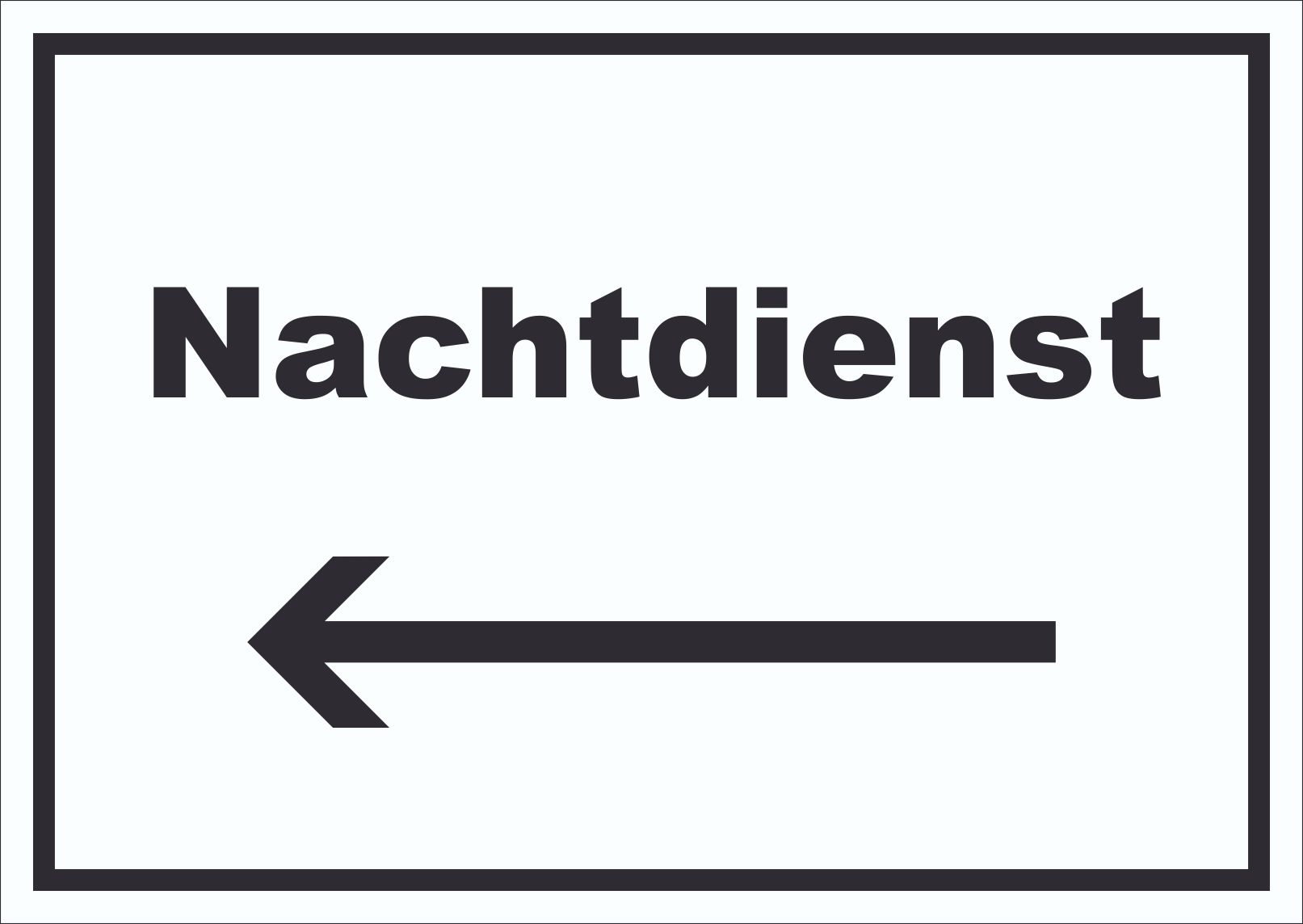 Nachtdienst Schild mit Text und Richtungspfeil links Nachtschalter waagerecht