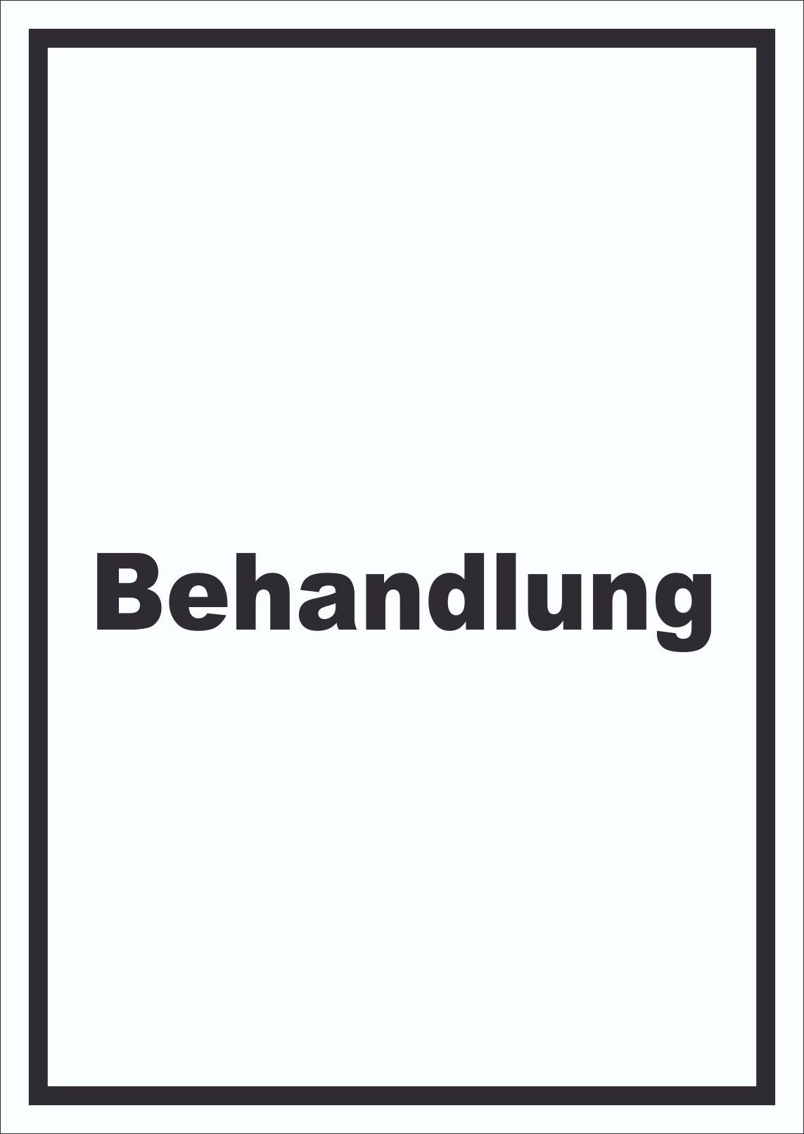Behandlung Schild mit Text Behandlungsraum hochkant