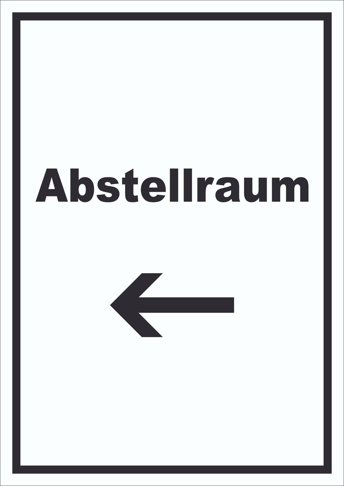 Abstellraum Schild mit Text und Richtungspfeil links Lager hochkant
