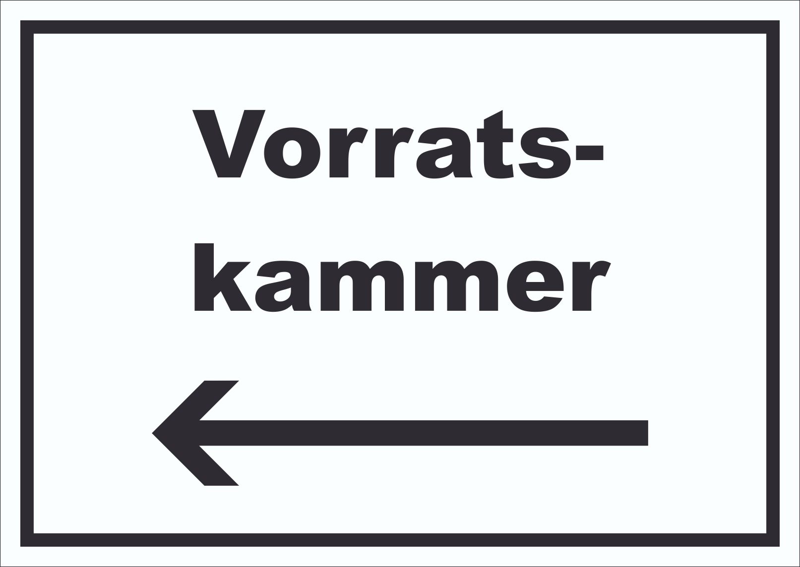 Vorratskammer Schild mit Text Richtungspfeil links Pantry Reserve waagerecht