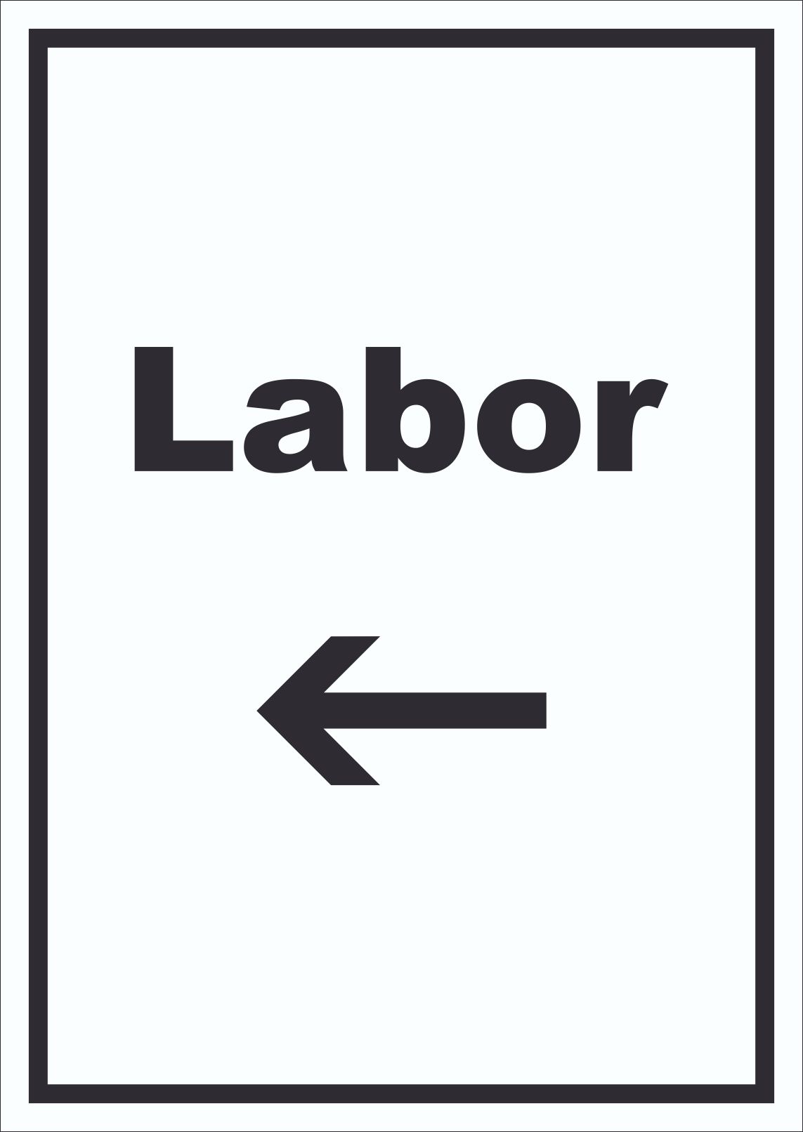 Labor Schild mit Text und Richtungspfeil links untersuchen forschen hochkant