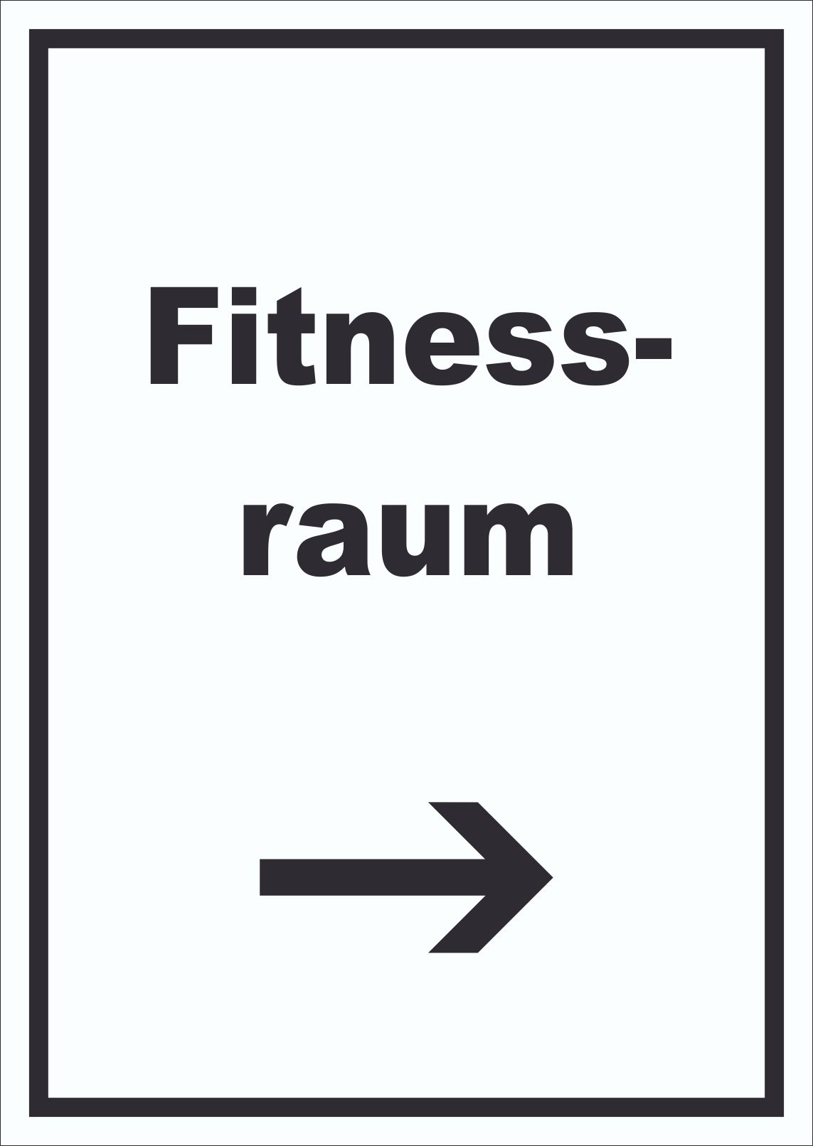 Fitnessraum Schild mit Text und Richtungspfeil rechts Sport Fit hochkant
