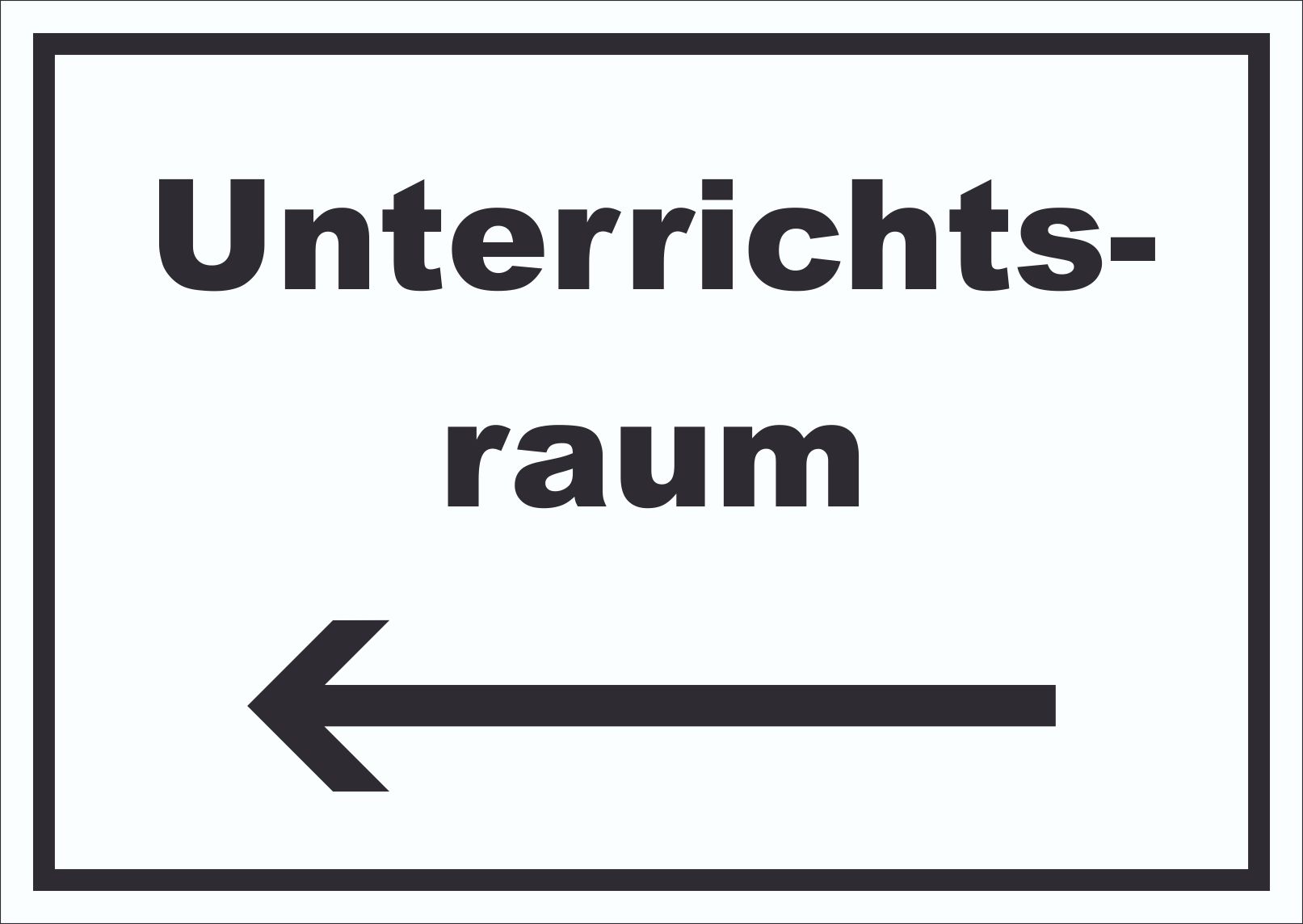 Unterrichtsraum Schild mit Text Richtungspfeil links Schule Schulung waagerecht