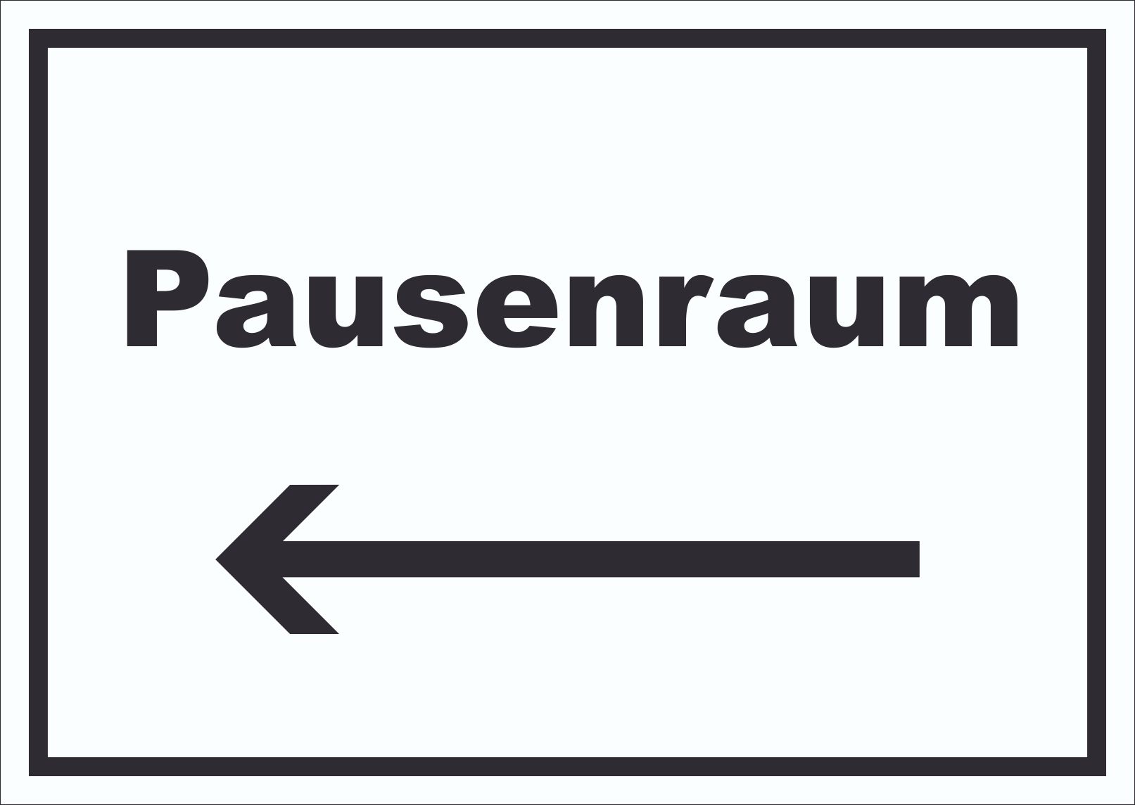 Pausenraum Schild mit Text Richtungspfeil links Pause Mittagspause waagerecht